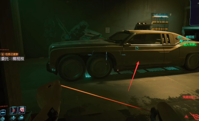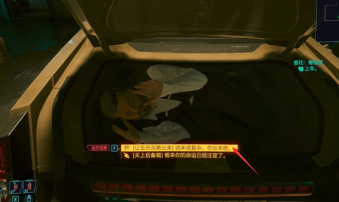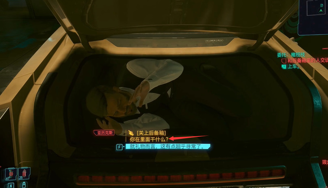 2.对话后进入仓库,打开车子的后备箱与亚历克斯交谈。
