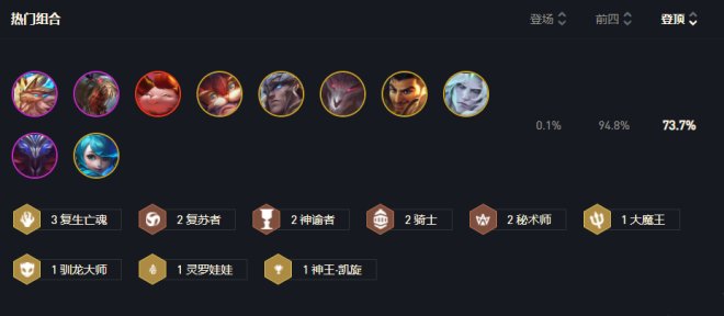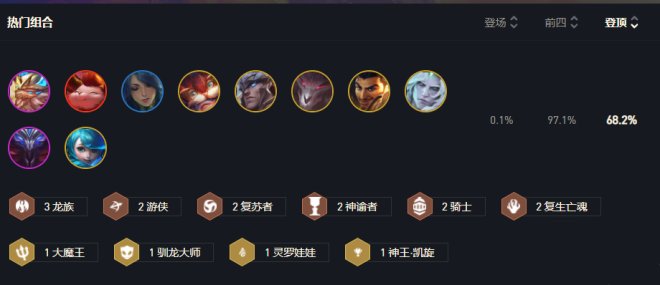 9、主要阵容羁绊:4神谕者 4黎明使者,4神谕者选择黑暗元首,天启者,翠神,迅捷斥候,4黎明使者选择众星之子,天启者,狂野女猎手,德玛西亚之力,后续提升就看阵容和抽卡搭配就行;