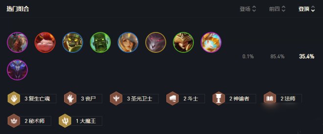 10、主要阵容羁绊:3复生亡魂 3丧尸 3圣光卫士 ,3复生亡魂末日使者,不灭狂雷,翠神,3丧尸选择复仇焰魂,雪原双子,末日使者,3圣光卫士选择光辉女郎,虚空之眼,黑暗元首,后续提升可以使用迅捷斥候或者影哨等高费卡;