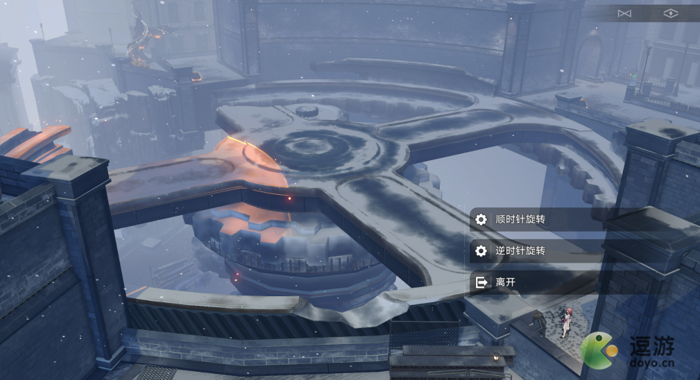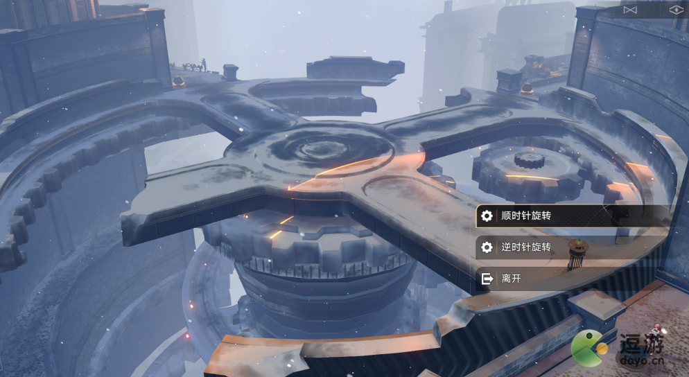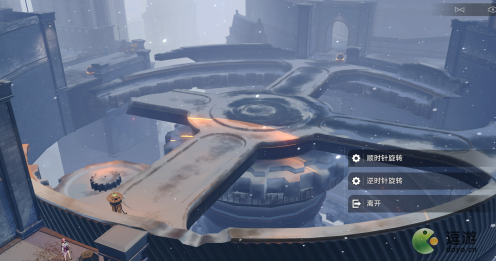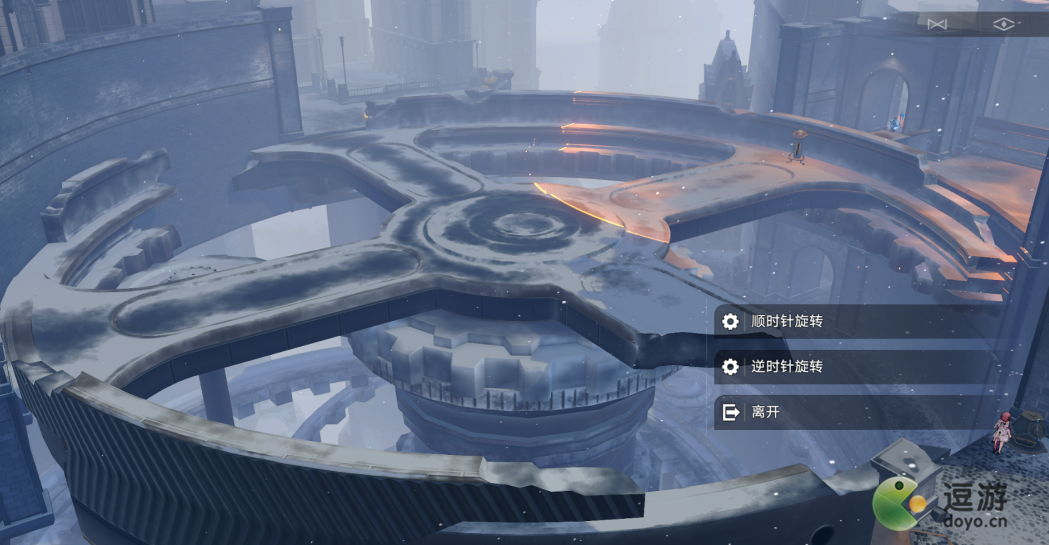2、完成后从左侧通道开门后前进,点燃中间圆盘上的灯炉,退回来路顺时针旋转一圈,返回初始位置从右侧通道前往挑战