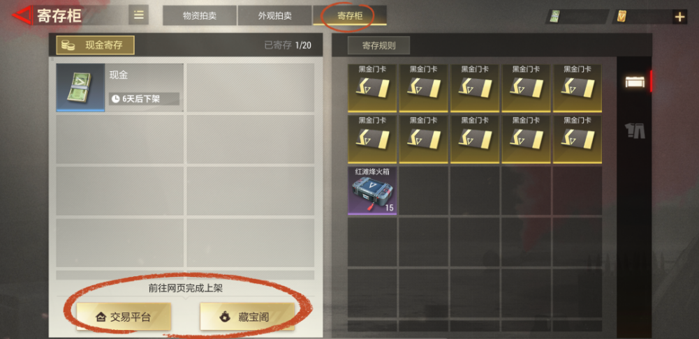 砖友可通过前往游戏中的【交易】板块进入【拍卖行】,点击【寄存柜】即可进入物品寄存页面。