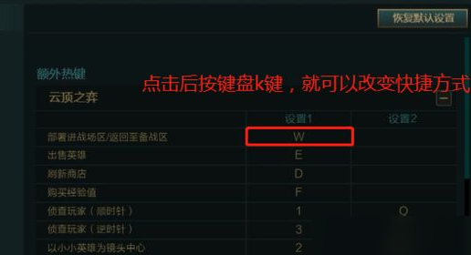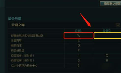 3、这里是我们常用操作快捷键所在的区域。例如,将英雄部署在棋盘上时,将鼠标放在所需操作的英雄头像上,按下w键即可。