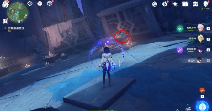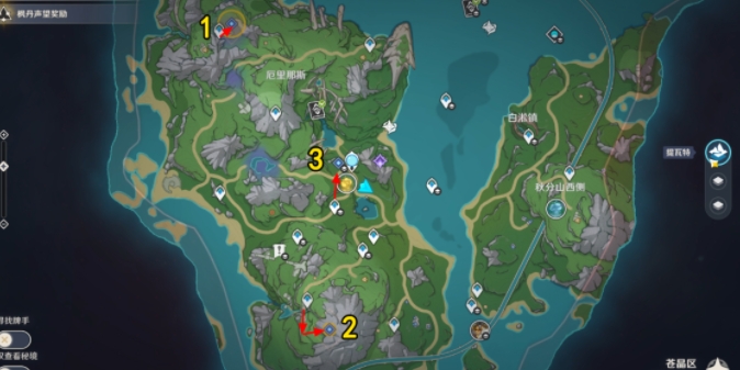 到达后,向北走,击败丘丘人后,出现【传送门】,利用路上的【传送门】,前往对面遗迹大门