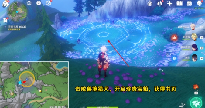 传送过来,向东北看,击败兽境猎犬,开启珍贵宝箱,获得书页1