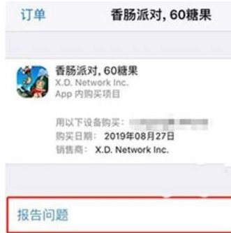 5、进入后选择要退款的订单,然后点击【报告问题】