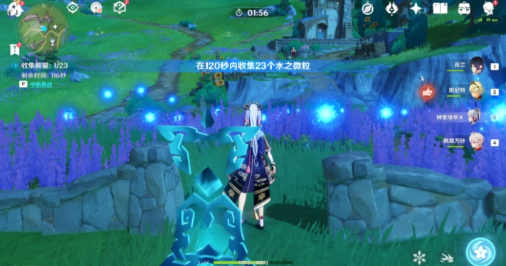 2.随后我们挖掘出一个挑战,开启挑战,收集23个水微粒,记得不要碰到花朵上