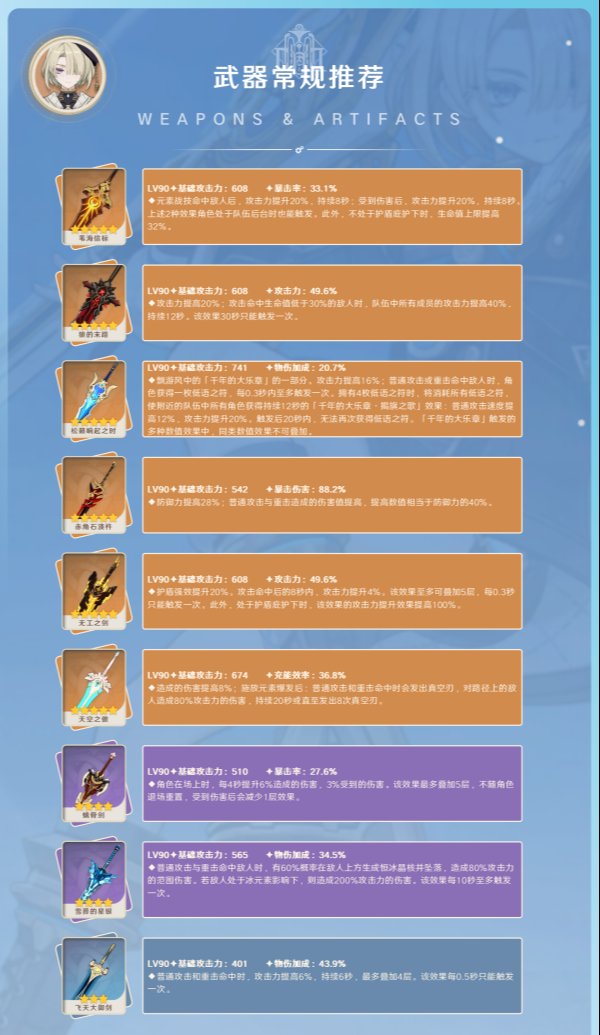 天空之傲较高基础攻,提供充能与伤害加成还有额外伤害,充能方面基本上不用担心,伤害加成通用于物伤流与冰伤流,而额外伤害只有物伤流才能完美发挥。