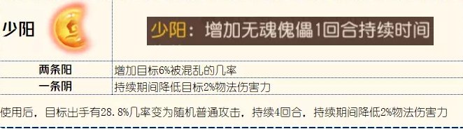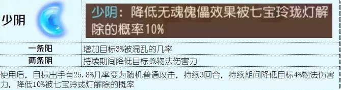 少阳可能在PVP中用处不大,因为被七宝解除的概率还是很高,大概率是不会持续到4回合的