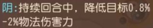 太阴比较适合给伤害比较高的单位使用,降低伤害的数值还是挺高的,而且在PVP中就算被七宝解除,还能扣除目标气血