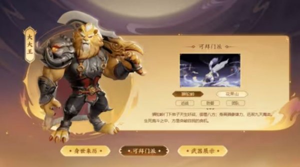 拜入花果山门派下,虎头怪将解锁更高的爆发伤害,上可担山赶月显神通,下可铁棒狂舞斩诛邪。而拜入狮驼岭门下的虎头怪则更具功能性,坚实的防御能力与出色的团队协助手段能帮助队伍在生死战局中脱颖而出。