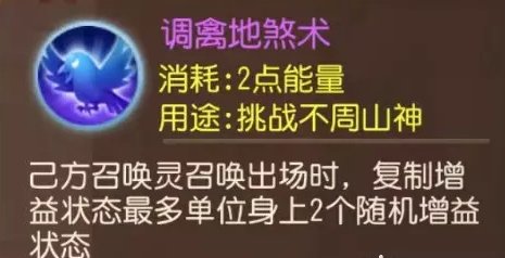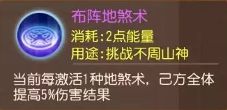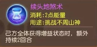 推荐理由:减少地煞术释放需要的能量值,若全使用高阶地煞术,20回合能多释放2个地煞术。建议第一回合使用。