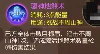 推荐理由:虽然效果不错,但为初阶地煞术,需要打3X及以下才会掉落,对能日常5X及以上固定队来说,拿有限的14只地煞(每天2只)分出来至少1只给3X有点亏。但对于平时仅打3、4X地煞的队伍来说,这个地煞术在不周山中非常实用。