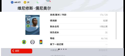 左边锋:维尼休斯·儒尼奥尔 满级数值:96