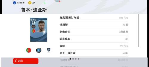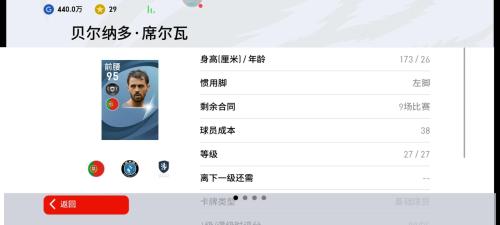前腰:贝尔纳多·席尔瓦 满级数值:95