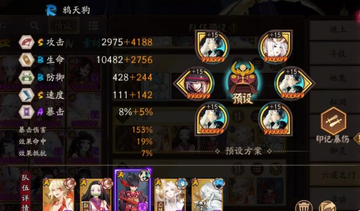 鸦天狗,遗念火速XX,指标速度,印记带攻击/爆伤