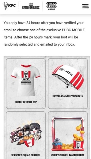 以上就是关于《绝地求生》PUBGKFC联名套装兑换教程分享的全部内容,希望能够有所帮助。更多绝地求生相关攻略点击绝地求生专区查看。