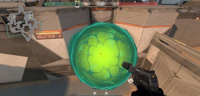 最终的效果就是这样,擦着毒幕的边就能下包。毒幕的作用不用多说,阻隔敌人视野,将A点分割成两个部分,方便我们下包。瘴云的作用一是阻挡灯区的敌人视野,二是用于我们进灯区进行反清。