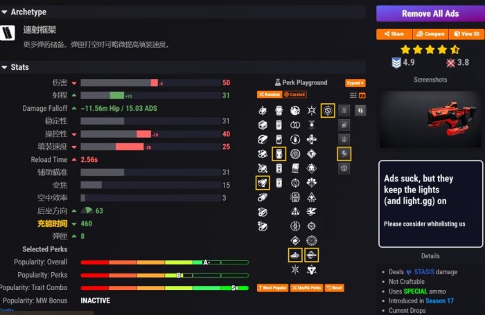这样你就会看到武器所拥有的词组池子,在这里你依然可以选择你想要的词组,查看不同配比对武器面板数值的改变。当然你是新玩家,有可能看不懂这些,所以注意看右上角的light。gg,单击后