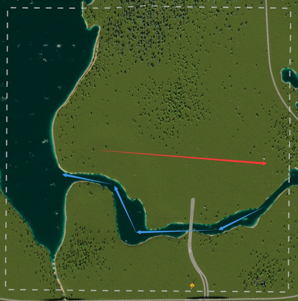 天际线因为有不少的系统,所以在开局就构思好整体布局非常重要,初始的布局如果不够合理如工业区位于上风向,抽水口在下游会导致整个城市容易患病同时幸福度较低,影响我们的后续发展。所以开局我们需要先确定水流方向以及风向。
