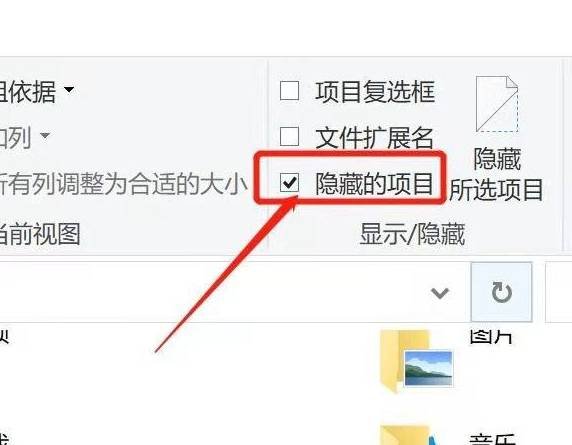5、另外,如果你找不到对应文件夹,需要在上方选择“查看”再勾选“隐藏的项目”即可。