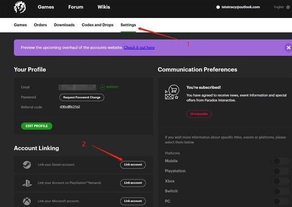 进入P社官网-选择settings-选择link account即可,进入P社官网在此页面中输入对应的信息,并提交创建账号注册。