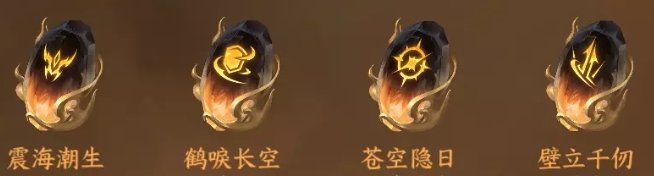 震海潮生,鹤唳长空,苍空隐日,壁立千仞,能用的也就这四个优先会心和破防打造,其他的有了留着备用!