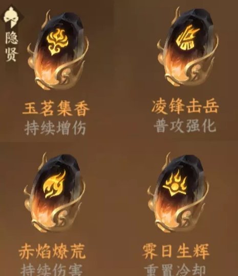 灭阵:群攻技能多可以带灭阵,更好凑三火元素周天。