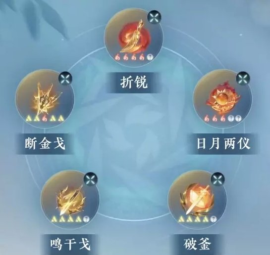 三金三火:折锐,日月两仪,破釜,鸣干戈,断金戈!