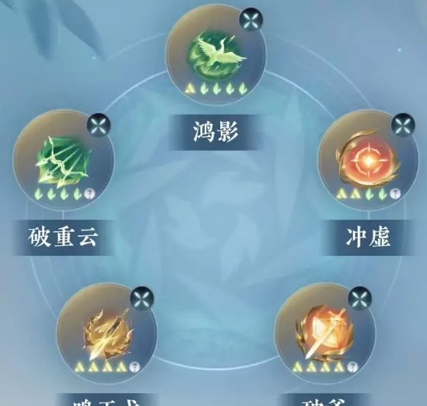 鸿影,冲虚,破釜,鸣干戈,破重云。