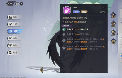 她的普通攻击技能叫做“紫焰”,这是一个最初伤害一般的单体技能。在升级后,该技能的伤害将得到提升,并且有机会对敌人施加灼烧效果。另外,雅儿贝德还拥有“恶魔的低语”技能,它是一个可以对敌人造成魔法伤害的小技能,持续时间大约为两个回合。最后,雅儿贝德的大招“入侵者的末日”是一个群体攻击技能,能对所有敌人造成较高的三段伤害。技能升级后伤害会有所提高。