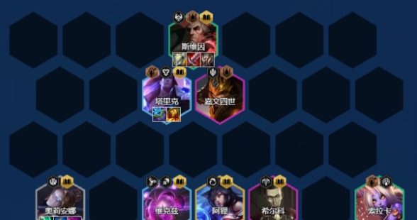 阵容组成:奥利安娜(发条)、斯维因(乌鸦)、索拉卡、维克兹、塔里克、希尔科、阿狸、嘉文四世。