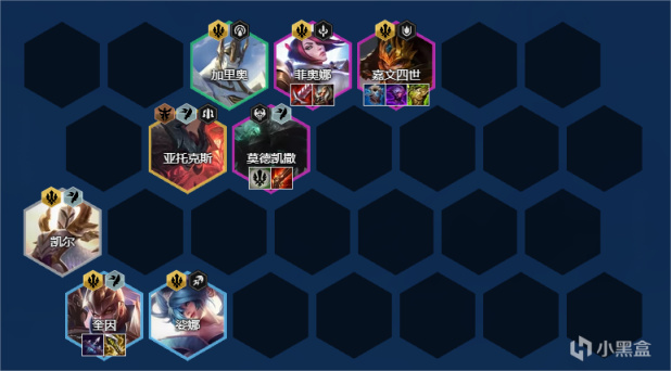 8人口开4裁决战士,优先上亚托克斯,没亚托克斯先用其他裁决英雄。8人口将4费卡搜出两星,之后存钱卡利息追三星奎因。如果有两个德玛西亚转职,后续可以上9开9德玛西亚。