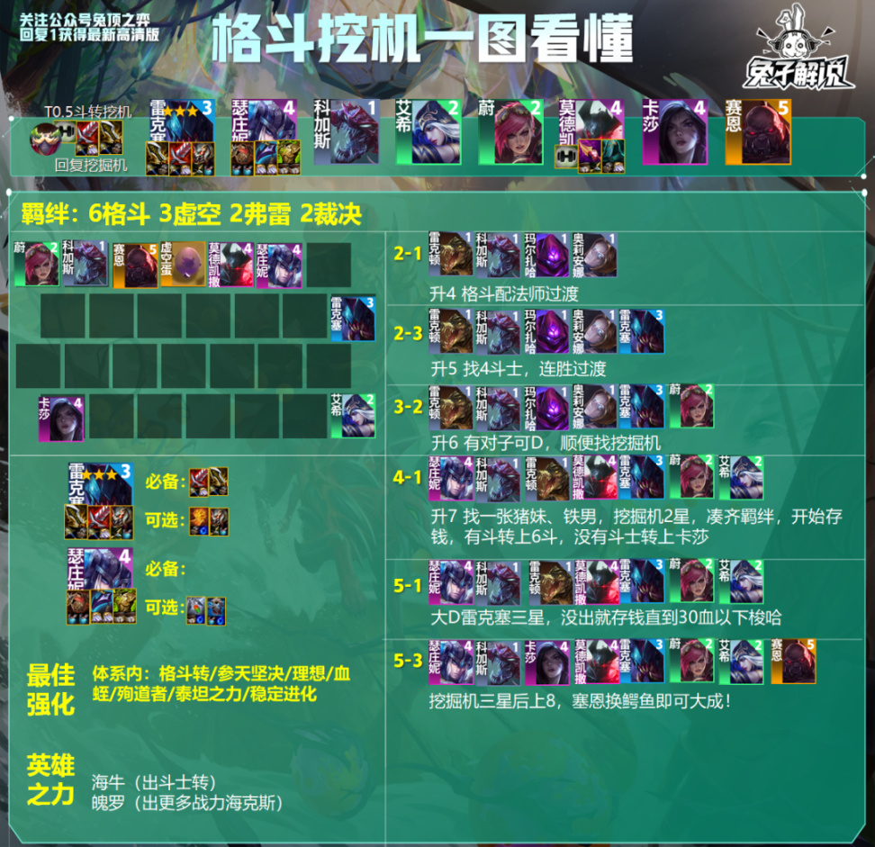 开到恕瑞玛转时候就奔着这套去打,当前版本恕瑞玛虽然加强了很多次,但因为对主C主坦装备都有要求比较难完美神装,所以玩的人反而没有那么多,但和诺克阵容一样很好从6恕瑞玛到九恕瑞玛,不怎么需要更换奕子,所以不怕手忙脚乱