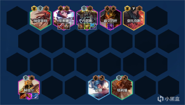 4-2到4-5之间上8人口,继续搜牌提升质量,将全体四费搜出两星,并找出亚托克斯开2主宰2暗裔。