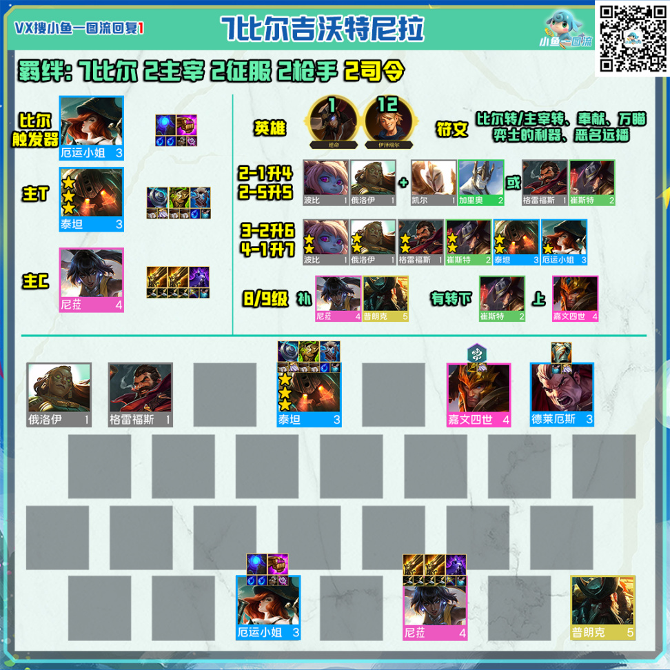 简评:这版本比尔玩的人还算少,但下版本泰坦、女枪双加强,预计高比尔可能会在大羁绊阵容中脱颖而出