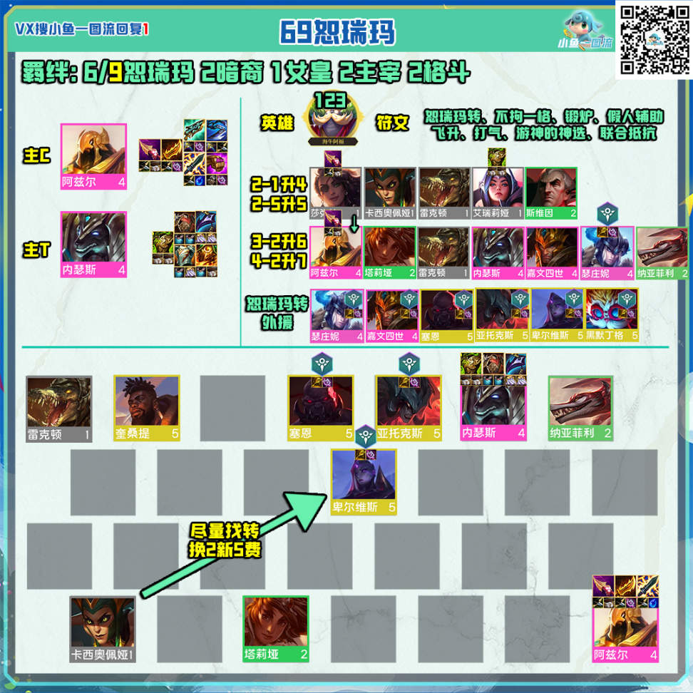 有吃鸡能力的几种剧本:各种45费卡都2星的6恕瑞玛、3星6恕沙皇、3星6恕狗头、奎桑提踹走对面一个大肉、9恕瑞玛2星大卑