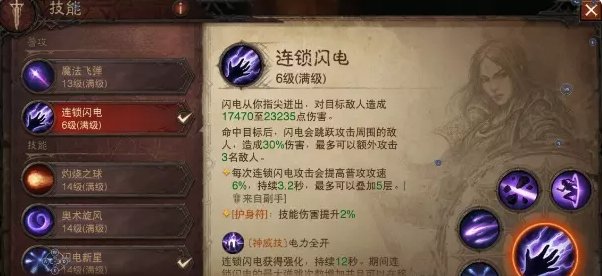 普攻选择连锁闪电,PVE里连锁闪电清怪方便魔法飞弹偏向单体,副手连锁闪电叠5层也可以达到30%攻速,和老绣释放闪电新星后直接加30%差距不大。