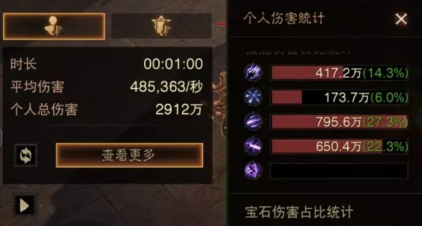1分钟测试伤害2843万伤害,秒伤47.3万,射线打了605万普攻只打了361.9万伤害,比起前两个流派射线伤害不如扇形,普攻占比也是最少的。