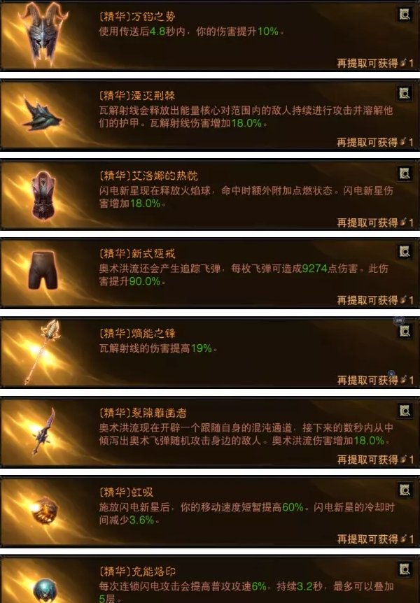 这套玩法和传统的火射线流以及扇形射线BD类似,都是带传送增伤头用奥术洪流+射线打主要输出,闪电新星增加位移并且衣服火焰新星给点燃状态。主手选择瓦解射线伤害提高19%,放弃了老绣在副手选择充能烙印弥补普攻攻速。