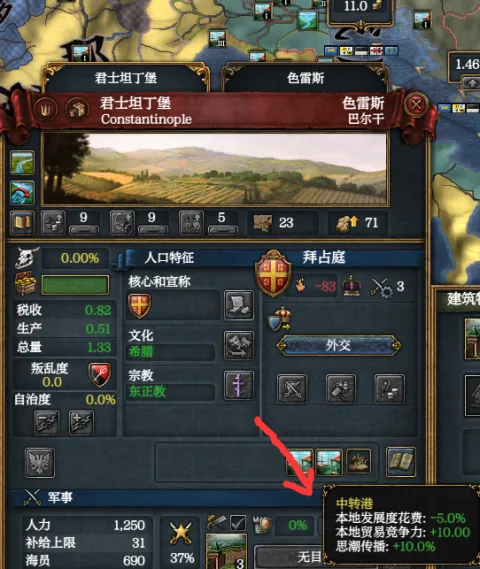 问题二:除了合理安置商人,如何增加贸易收入?首先,垄断你的贸易总部。然后独占你的上游,一直往后退。最简单的方法是根据贸易地图把那个地区都拍下来。但是真正决定你贸易竞争力的,大多是一些特定的领域,有自己的buff。你只需要放下这些地方。你知道大英帝国为什么只想要香港一块地吗?它只关心贸易收入。如下图,从贸易的角度来看,奥斯曼最重要的起点是君士坦丁堡。