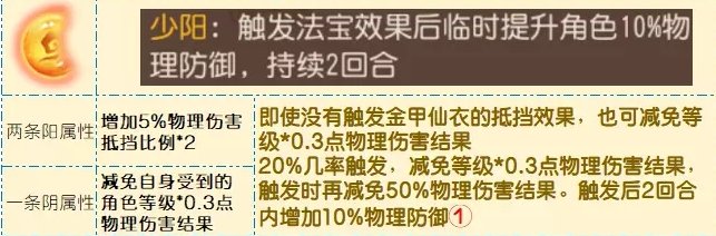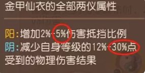 金甲的两仪阳属性与金甲的基础属性效果相加,抵挡比例最高的是