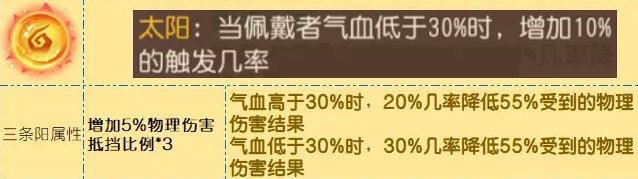 太阳三条阳属性合计15%,+基础效果就是55%;少阴+10%,一条阳属性5%,+基础效果也是55%。