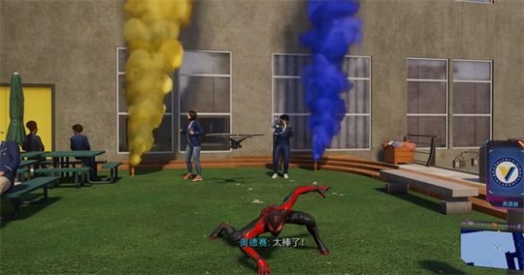 5. 最后只需要荡蛛丝跟着无人机,这里还得用上滑翔翼,不然跟不上,然后到达地点任务就会完成。