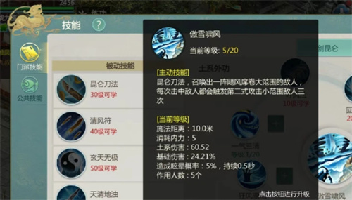 这是一种强大的连续攻击技能,能够对敌人造成三段攻击。每一段攻击都有可能使敌人陷入眩晕状态,这为玩家创造了连续攻击的机会。傲雪啸风不仅攻击力强大,眩晕效果也为队友创造了更多的输出机会,是团队战斗中的关键技能。这个技能是角色的主要攻击手段,是需要优先升级的重要技能。