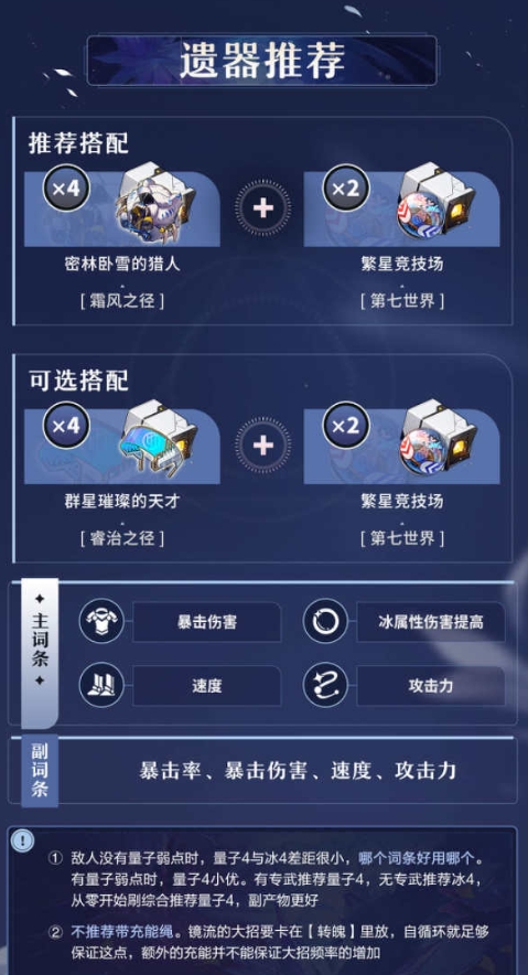 外圈四件套选择冰4或者量子4皆可,二者差距极小,冰套领先仅1%,故哪套词条好选哪套即可。