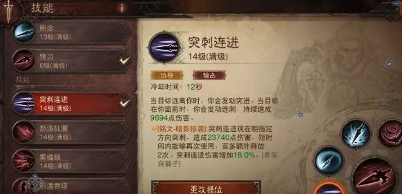 突刺连进变成3段位移,冷却时间12秒