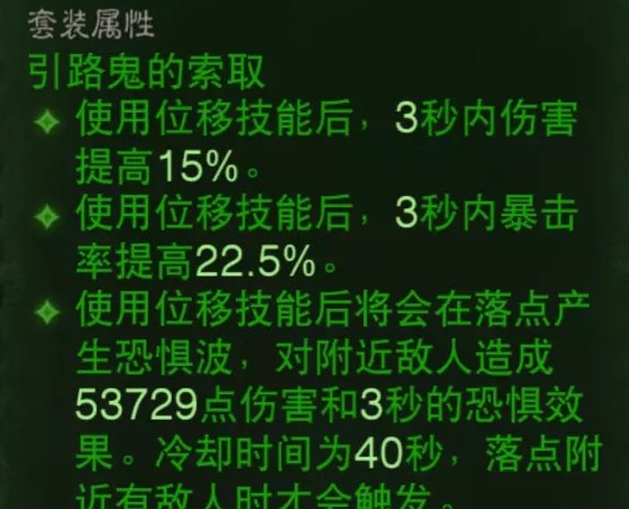 这套玩法可以直接带6引路鬼,或者4引路鬼+2苦行或者2魔眼,因为4引路鬼是必带的,6引路鬼可以每40秒触发一次53729的伤害并且带3秒恐惧,2苦行2魔眼看个人喜号,苦行可以给蝙声掠影增伤,魔眼可以通过宝石等方式触发。