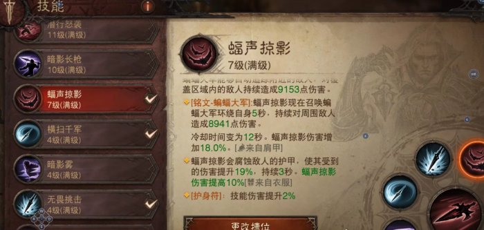 蝠声掠影选择蝙蝠大军,因为这个技能可以给我们补充AOE能力,同时在开位移技能的时候随时可以释放。