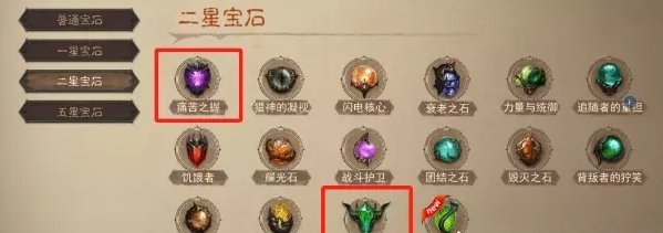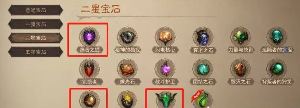 2星宝石推荐痛苦之握、莉莉丝的哀叹,狂热之牙不好叠加并不推荐,如果5星宝石没有条件做那么多,2星还可以去做蝮蛇之噬或者力量与统御等等。
