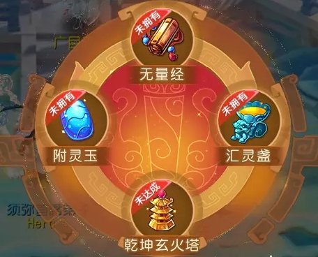须弥海门派法宝的前置法宝是:无量经、附灵玉、汇灵盏和乾坤玄火塔,和龙宫的一样